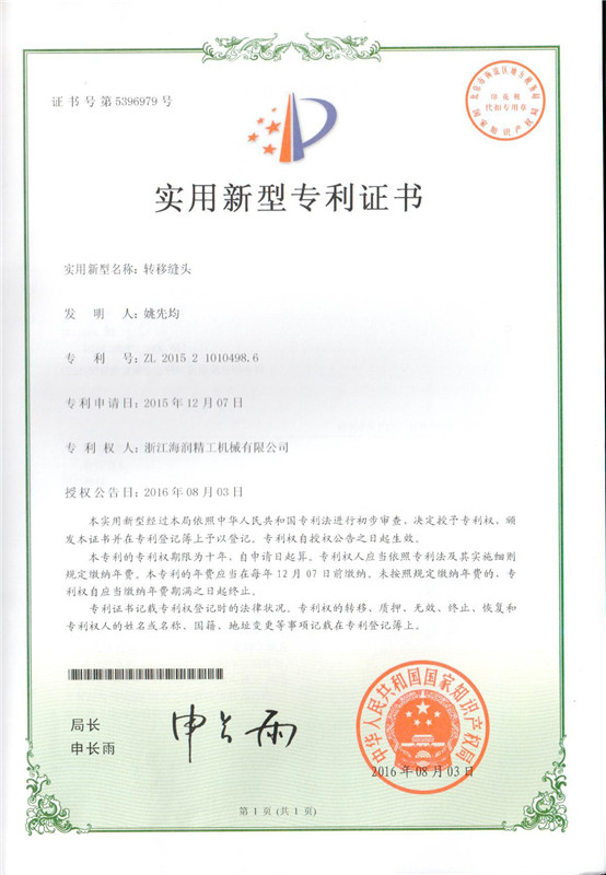 實用新型專利-轉(zhuǎn)移縫頭